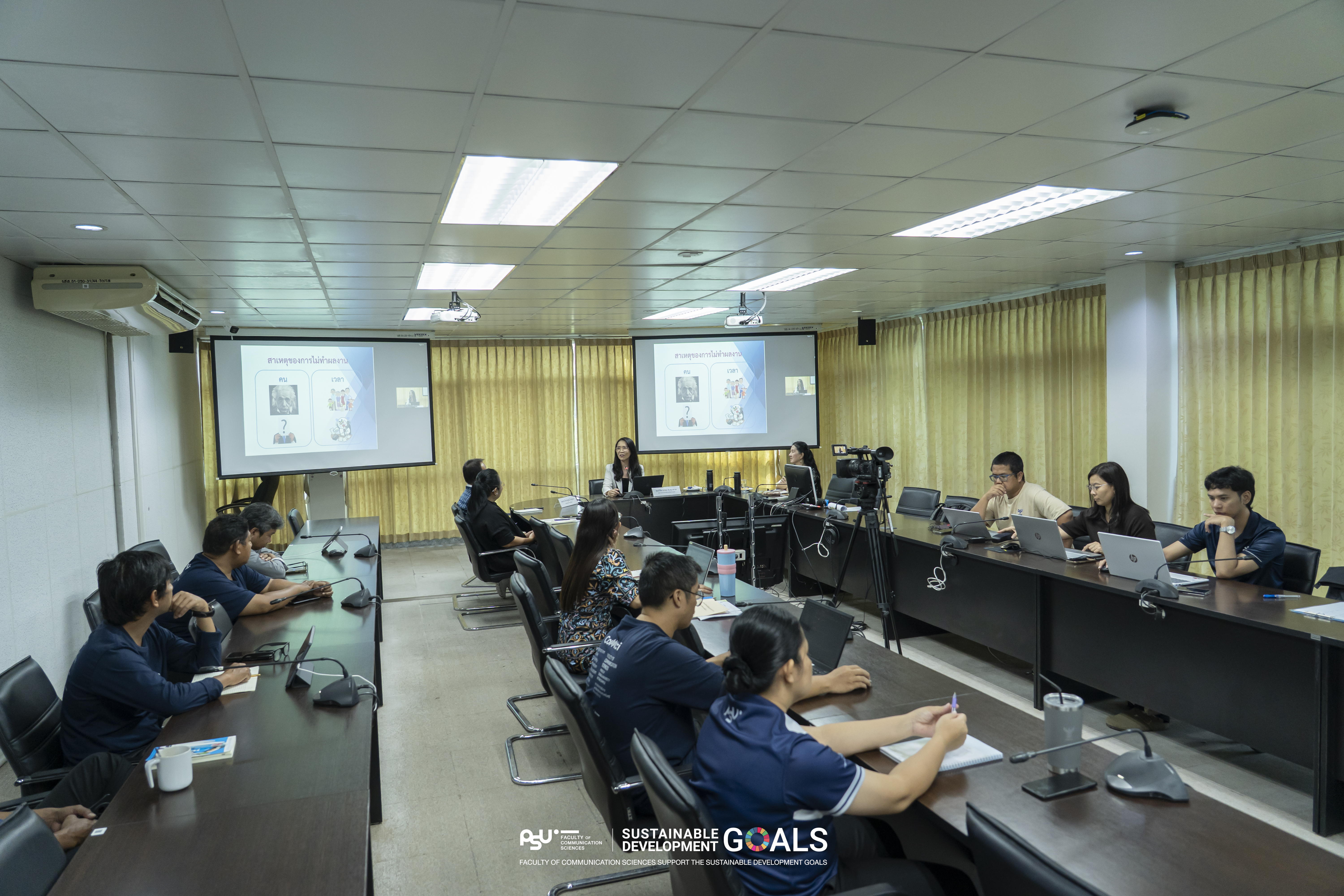 คณะวิทยาการสื่อสาร มหาวิทยาลัยสงขลานครินทร์ วิทยาเขตปัตตานี จัดกิจกรรมเสริมศักยภาพบุคลากรสายอำนวยการฯ ในหัวข้อ “ครบเครื่องบนเส้นทางก้าวสู่ตำแหน่งที่สูงขึ้น ประจำปี 2569” เมื่อวันที่ 2 มีนาคม 2569 ณ ห้องประชุมชูเกียรติ ปิติเจริญกิจ ชั้น 3 คณะวิทยาการสื่อสาร และผ่านระบบออนไลน์ โอกาสนี้ ทางผู้ช่วยศาสตราจารย์ ดร.ภีรกาญจน์ ไค่นุ่นนา คณบดีคณะวิทยาการสื่อสาร ได้กล่าวต้อนรับผู้เข้าร่วมกิจกรรม พร้อมด้วยคุณพิมพ์ชนก พลวรรณ หัวหน้าสำนักงานบริหารคณะ กล่าวถึงวัตถุประสงค์และความสำคัญของการจัดกิจกรรมในครั้งนี้ ซึ่งการจัดกิจกรรมมุ่งเน้นการเสริมสร้างความรู้ ความเข้าใจ และเตรียมความพร้อมอย่างรอบด้านให้แก่บุคลากรสายอำนวยการ ในการวางแผนความก้าวหน้าในสายงานอย่างเป็นระบบ สอดคล้องกับหลักเกณฑ์และแนวปฏิบัติที่เกี่ยวข้องกับการเข้าสู่ตำแหน่งที่สูงขึ้น นอกจากนี้ ยังได้รับเกียรติจากวิทยากรผู้เชี่ยวชาญจากกองบริหารทรัพยากรบุคคล มหาวิทยาลัยสงขลานครินทร์ ร่วมถ่ายทอดองค์ความรู้ แนะนำแนวทางการเตรียมเอกสาร และแลกเปลี่ยนประสบการณ์อย่างเข้มข้น สร้างความเข้าใจที่ชัดเจนและสามารถนำไปประยุกต์ใช้ได้จริงในการพัฒนาตนเองและสายงานต่อไป