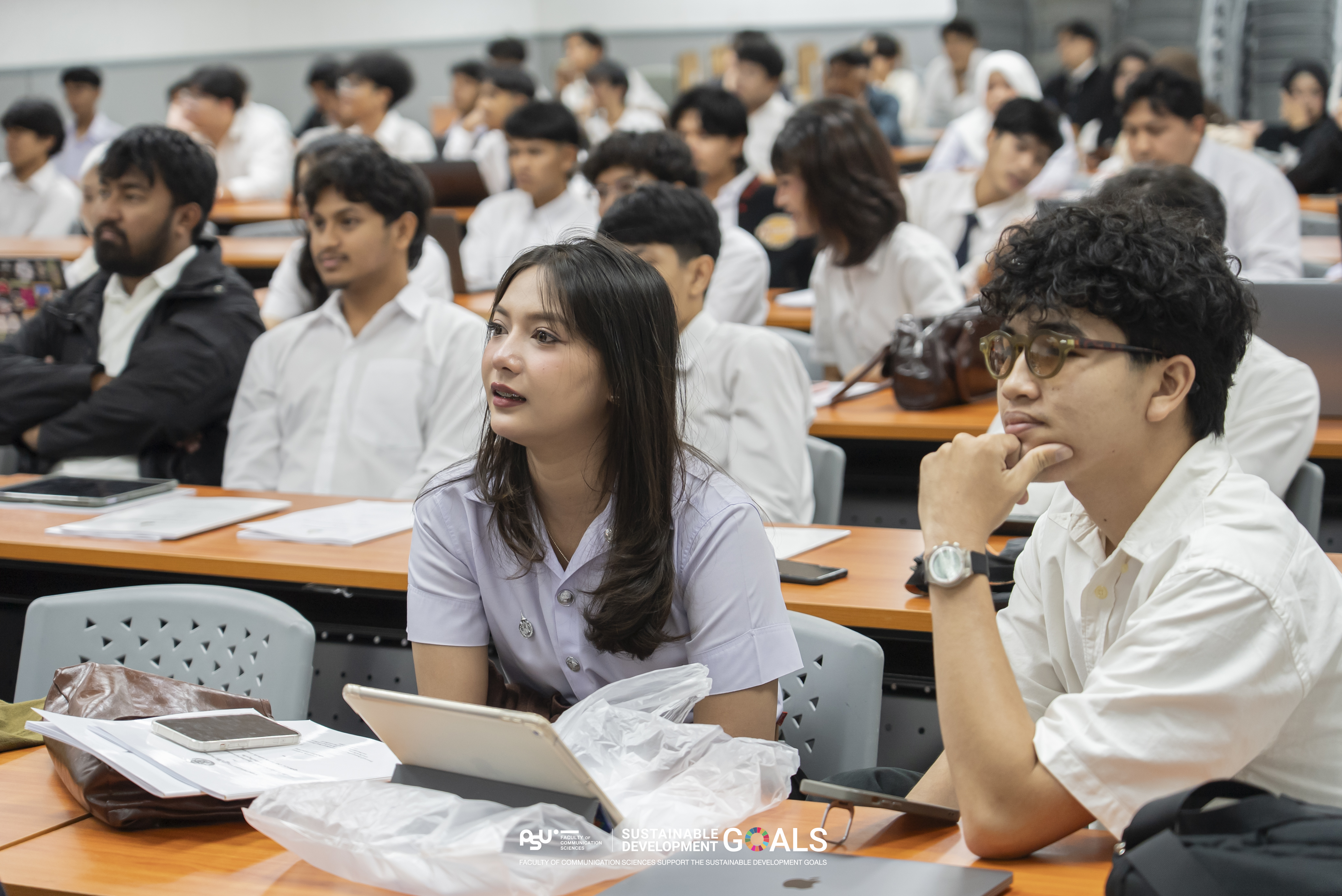 นางสาวคูไซฟ๊ะ เจะเตะ นักศึกษาชั้นปีที่ 4 สาขาวิชานิเทศศาสตร์ กล่าวถึงประสบการณ์จากการฝึกสหกิจศึกษาว่า มีโอกาสได้ทำงานกับ 2 องค์กร ได้แก่ อาเซียนอาร์ตเซ็นจูรี่ ในตำแหน่ง Content Creator และบริษัท วิปอดิศา โซไซตี้ ในบทบาทพนักงานต้อนรับ ดูแลพื้นที่ Co-working Space ซึ่งประสบการณ์จากทั้งสององค์กรทำให้ได้เรียนรู้ทักษะสำคัญหลายด้าน โดยเฉพาะการบริหารจัดการเวลาในการผลิตสื่อและตัดต่อวิดีโอ รวมถึงการประสานงานระหว่างองค์กร เนื่องจากทั้งสองหน่วยงานมีความร่วมมือกัน จึงทำหน้าที่เป็นตัวกลางในการสื่อสารและประสานงาน อีกทั้งยังได้เรียนรู้การปรับตัวให้เข้ากับวัฒนธรรมการทำงานที่แตกต่างกันของแต่ละองค์กร