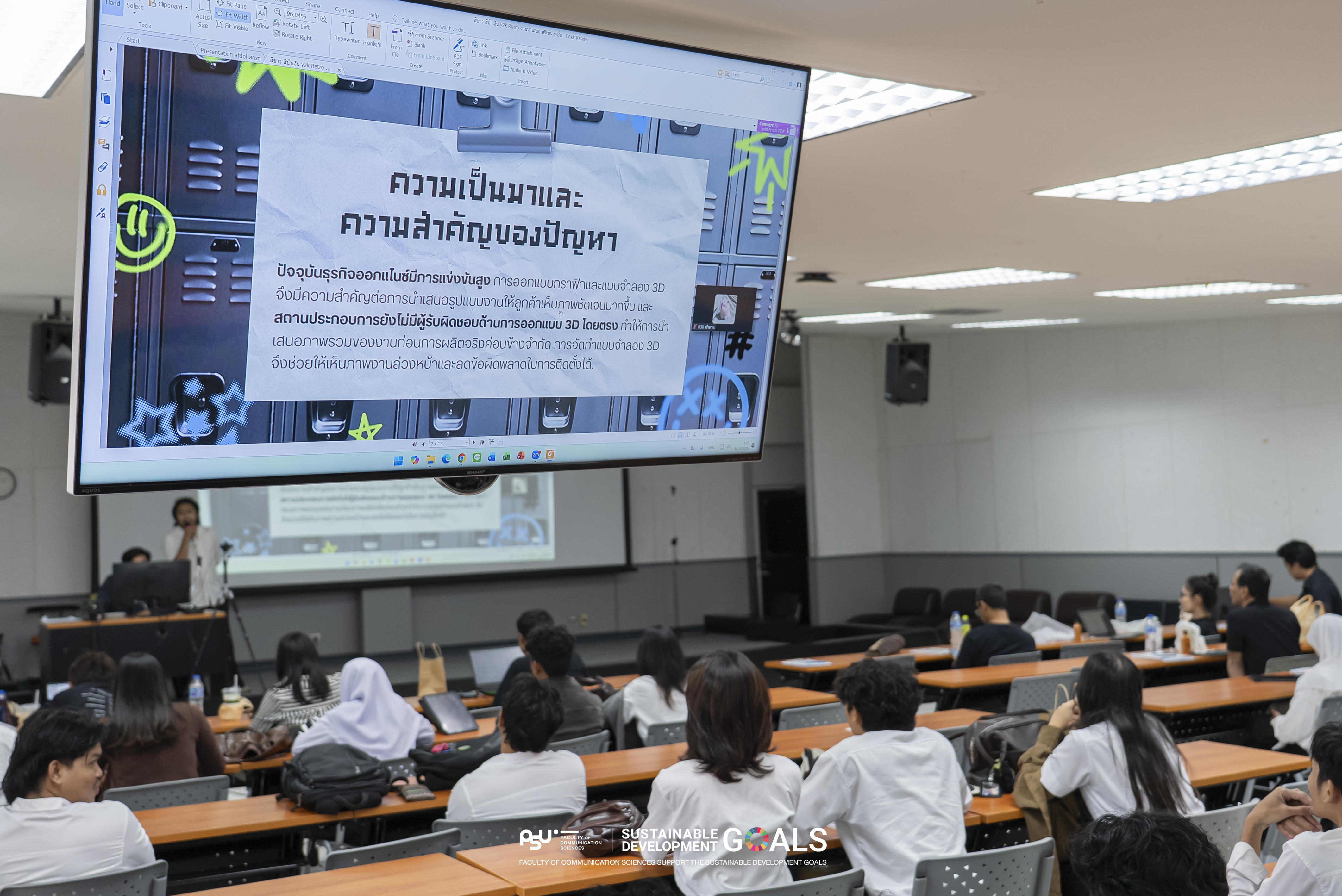 คณะวิทยาการสื่อสาร จัดโครงการ “สัมมนาหลังปฏิบัติสหกิจศึกษาและส่งเสริมการประกวดโครงงานระดับวิทยาเขต” ระหว่างวันที่ 9–11 มีนาคม 2569 เพื่อเปิดเวทีให้นักศึกษาได้นำเสนอผลการปฏิบัติงานจากประสบการณ์สหกิจศึกษา ถ่ายทอดองค์ความรู้และประสบการณ์การทำงานจริงให้คณาจารย์และนักศึกษารุ่นน้องได้รับฟัง พร้อมทั้งส่งเสริมให้นักศึกษาพัฒนาโครงงานเพื่อเข้าร่วมการประกวดในระดับวิทยาเขต ภายในกิจกรรมมีการจัดแสดงบอร์ดผลงานสหกิจศึกษาของนักศึกษาตลอดระยะเวลาการจัดกิจกรรม พร้อมทั้งเปิดพื้นที่ให้นักศึกษาได้ฝึกทักษะการนำเสนอผลงานในรูปแบบวิชาการ โดยในวันที่ 10 มีนาคม 2569 สาขาวิชานิเทศศาสตร์และสาขาวิชานวัตกรรมการออกแบบ จัดการนำเสนอผลงานในรูปแบบบรรยาย (Oral Presentation) เพื่อสะท้อนกระบวนการทำงานและผลลัพธ์ที่เกิดขึ้นจากการปฏิบัติงานในสถานประกอบการ และในวันที่ 11 มีนาคม 2569 ทางสาขาวิชาคอมพิวเตอร์และวิทยาการสารสนเทศเพื่อการจัดการ จัดการนำเสนอผลงานในรูปแบบโปสเตอร์ (Poster Presentation) พร้อมจัดกิจกรรมเสวนาในหัวข้อ “โลกดิจิทัล 2030: Disruption or Opportunity – ตลาดต้องการ Talents แบบใด” เพื่อเปิดมุมมองต่อการเปลี่ยนแปลงของโลกดิจิทัลและทักษะที่ตลาดแรงงานต้องการในอนาคต กิจกรรมดังกล่าวเป็นส่วนหนึ่งของการพัฒนาศักยภาพนักศึกษาให้สามารถเชื่อมโยงองค์ความรู้ทางวิชาการกับประสบการณ์การทำงานจริง ตลอดจนเสริมสร้างทักษะการนำเสนอผลงานและการเรียนรู้จากภาคอุตสาหกรรม เพื่อเตรียมความพร้อมสู่การเป็นบัณฑิตที่มีคุณภาพในบริบทของการทำงานจริง