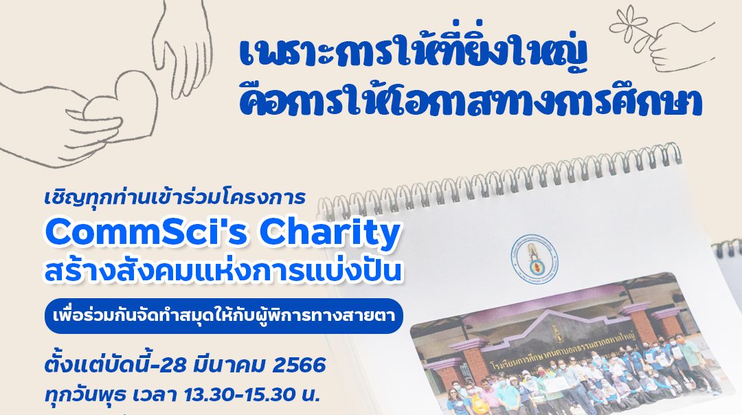 เชิญชวนทุกท่านเข้าร่วม “โครงการ CommSci’s Charity สร้างสังคมแห่งการแบ่งปัน” เพื่อร่วมกันจัดทำสมุดให้กับผู้พิการทางสายตา