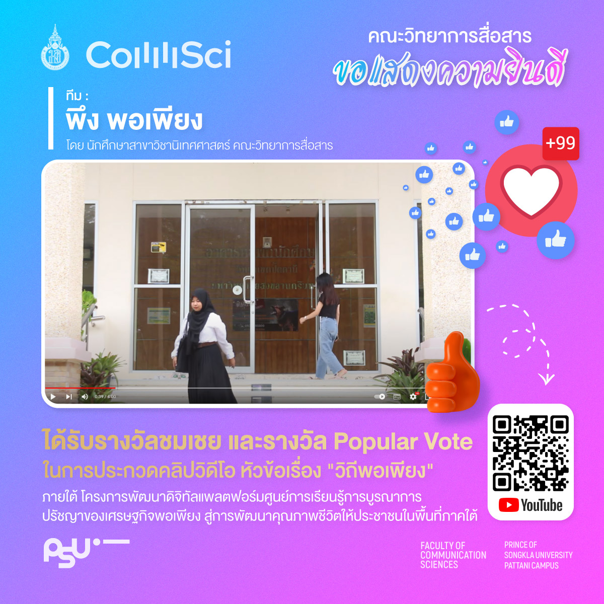 คณะวิทยาการสื่อสารขอแสดงความยินดีกับนักศึกษาสาขานิเทศศาสตร์ที่ได้รับรางวัลการประกวดคลิปวิดีโอ หัวข้อเรื่อง “วิถีพอเพียง”