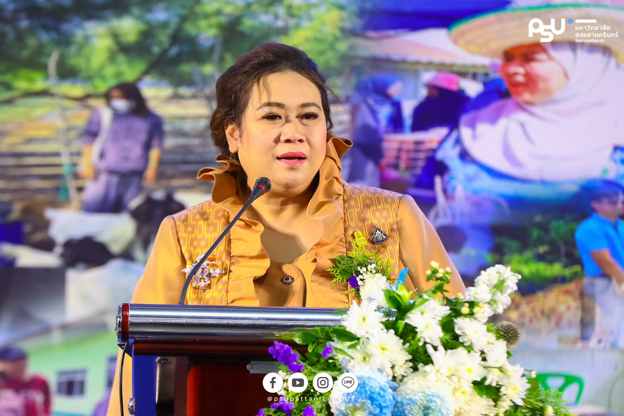 นางสาวศุภมาส อิศรภักดี รัฐมนตรีว่าการกระทรวงการอุดมศึกษา วิทยาศาสตร์ วิจัยและนวัตกรรม ได้มอบนโยบายสำคัญของกระทรวง อว. คือ ให้สถาบันการศึกษามีบทบาทในการขับเคลื่อนสังคมเพื่อความเป็นเลิศ และเพื่อความมั่นคงของชีวิตและเศรษฐกิจ ที่มุ่งเน้น “เรียนดี มีความสุข มีรายได้” โดยยึดผู้เรียนเป็นศูนย์กลาง และ “วิจัย-นวัตกรรมดี ตอบโจทย์ ตรงความต้องการ” โดยเน้นประเด็นสำคัญของประเทศ ทั้งนี้ ภายในงานมีการนำเสนอนิทรรศการ ผลงาน และผลิตภัณฑ์ในโครงการวิจัยของมหาวิทยาลัยสงขลานครินทร์ วิทยาเขตปัตตานีอีกด้วย