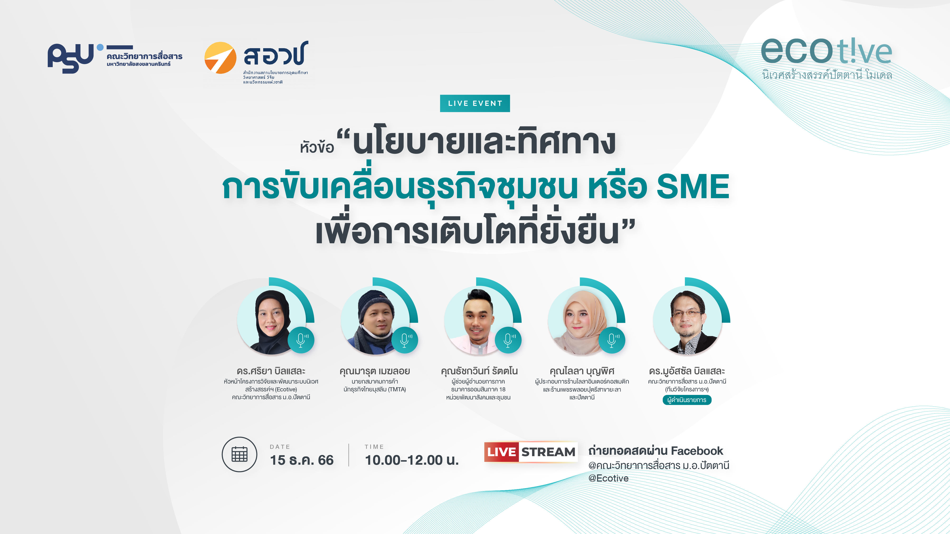 เสวนาในหัวข้อ “Ecotive กับการพัฒนาระบบนิเวศสร้างสรรค์เพื่อการขับเคลื่อนเศรษฐกิจฐานราก จังหวัดปัตตานี”