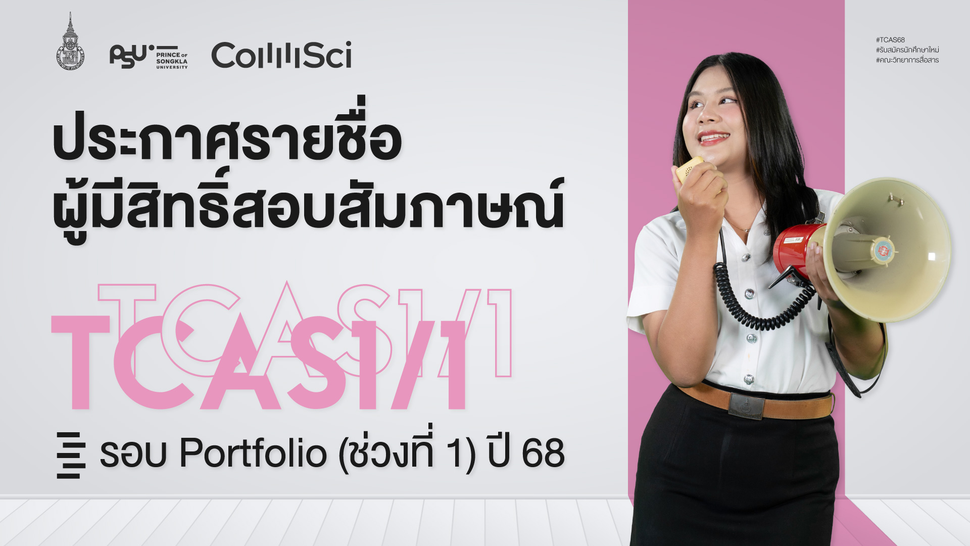 คณะวิทยาการสื่อสารประกาศรายชื่อผู้มีสิทธิ์เข้าสอบสัมภาษณ์ในรอบ TCAS 1/1 Portfolio (ช่วงที่ 1) ประจำปีการศึกษา 2568 จำนวน 3 โครงการ