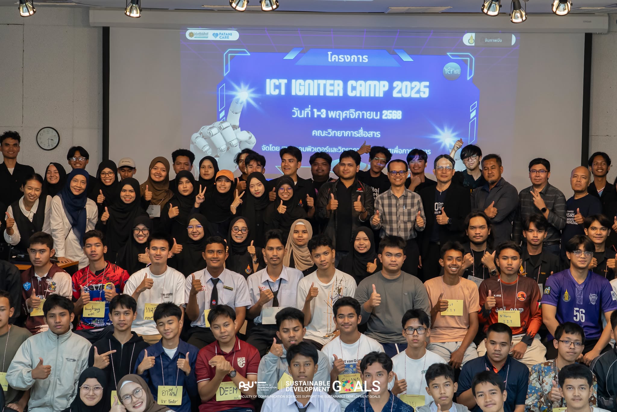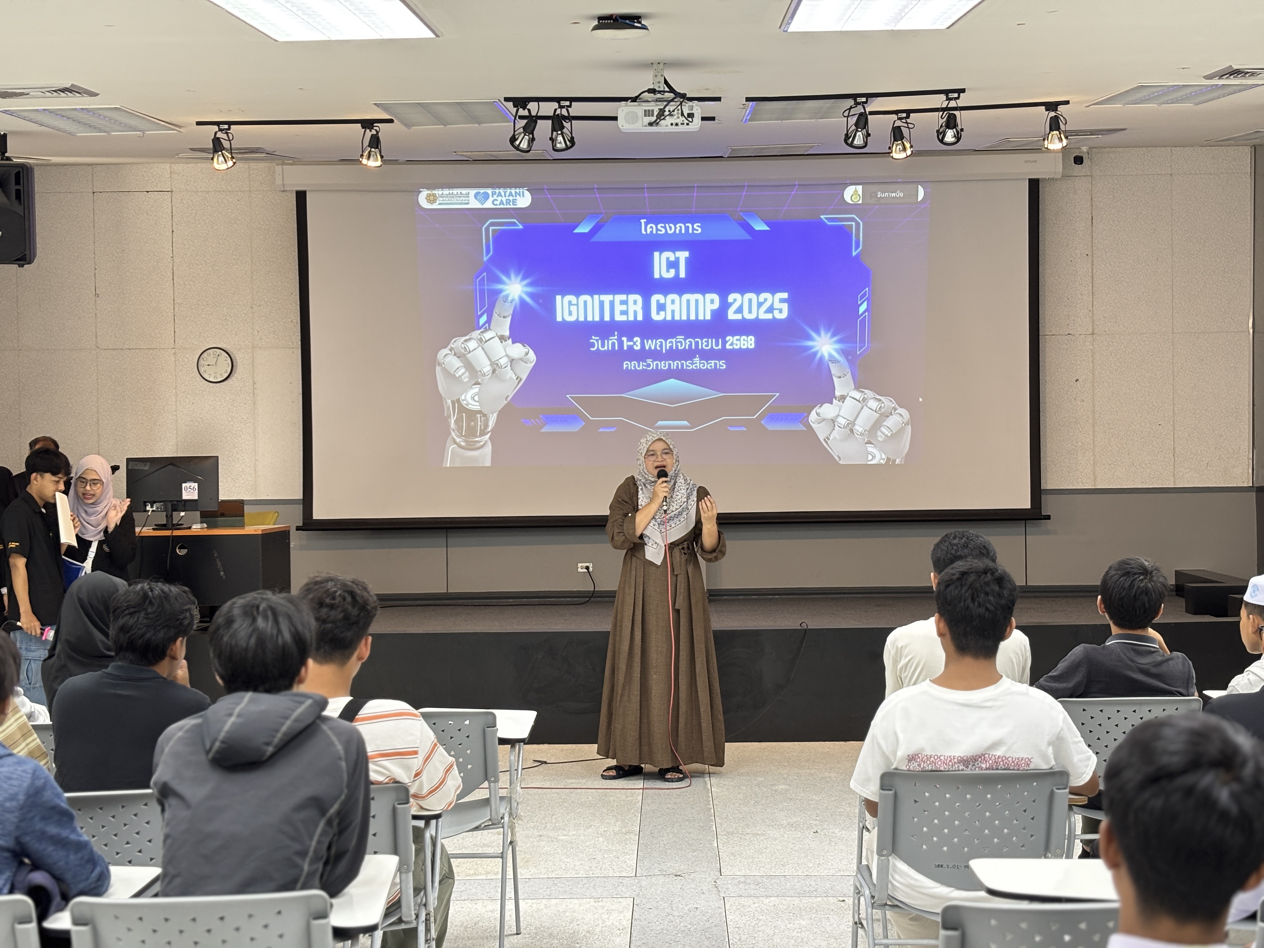 สาขาวิชาคอมพิวเตอร์และวิทยาการสารสนเทศเพื่อการจัดการ (CIM) คณะวิทยาการสื่อสาร มหาวิทยาลัยสงขลานครินทร์ วิทยาเขตปัตตานี จัดโครงการ ICT Igniter Camp 2025 ระหว่างวันที่ 1–3 พฤศจิกายน 2568 โดยมี ผู้ช่วยศาสตราจารย์ ดร.วรรนิสา มัจฉา รองคณบดีฝ่ายวิชาการและวิรัชกิจ เป็นประธานกล่าวเปิดกิจกรรม พร้อมให้โอวาทแก่ผู้เข้าร่วมค่ายกว่า 60 คน ทั้งนี้โครงการดังกล่าวมุ่งเปิดโอกาสให้นักเรียนระดับมัธยมศึกษาตอนปลายและนักศึกษาระดับประกาศนียบัตรวิชาชีพ (ปวช.) ที่สนใจด้านเทคโนโลยี ได้เข้าร่วมกิจกรรมฝึกอบรมเชิงปฏิบัติการ 2 หลักสูตร ได้แก่
