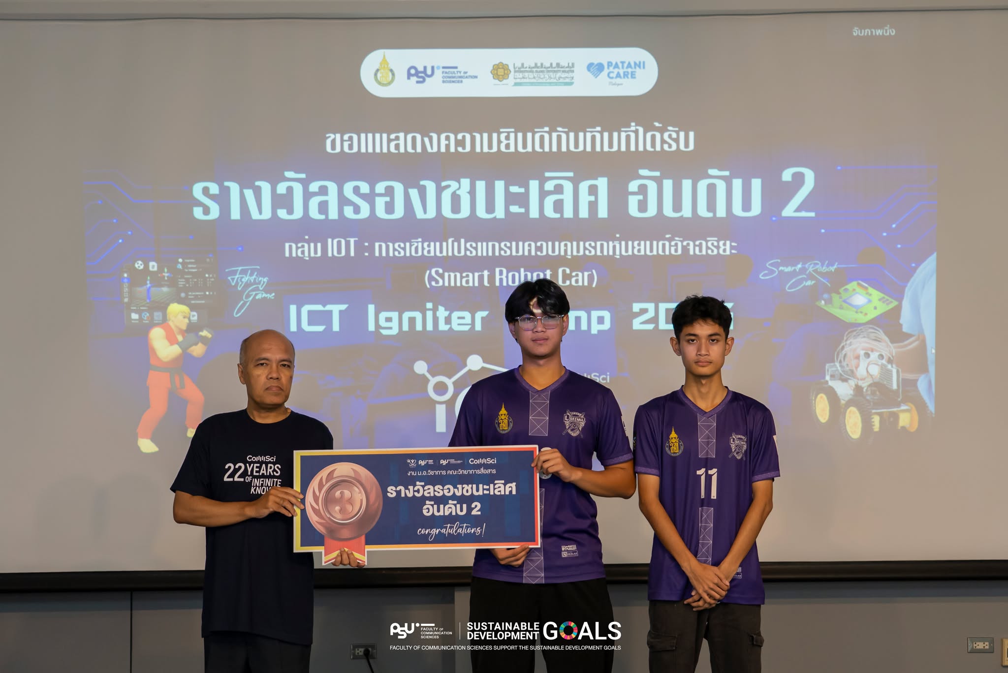 สำหรับบรรยากาศการจัดค่ายตลอด 3 วันเป็นไปอย่างคึกคัก เต็มไปด้วยพลังแห่งการเรียนรู้ ความสนุกสนาน และความร่วมมือของผู้เข้าร่วมที่ต่างตั้งใจสร้างผลงานสุดท้าทาย ก่อนปิดกิจกรรมด้วยการมอบรางวัลแก่ผู้ชนะการประกวดโดย ผู้ช่วยศาสตราจารย์ ดร.ภีรกาญจน์ ไค่นุ่นนา คณบดีคณะวิทยาการสื่อสาร ซึ่งกิจกรรมนี้ไม่เพียงมอบประสบการณ์ด้านเทคโนโลยีเท่านั้น แต่ยังเป็นเวทีให้เยาวชนได้ค้นหาความสนใจของตนเองและต่อยอดสู่เส้นทางอาชีพในอนาคตอย่างมั่นใจ