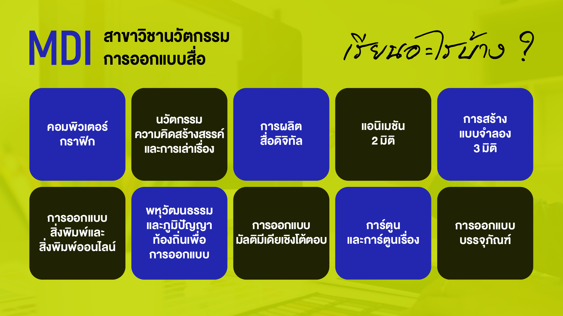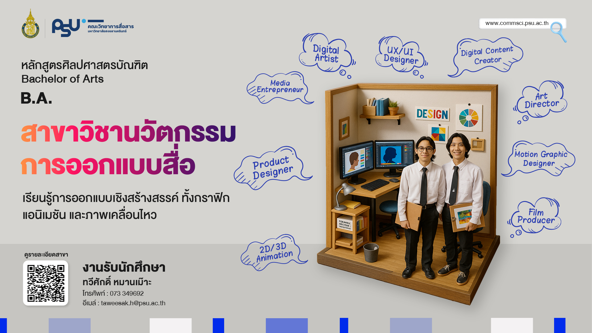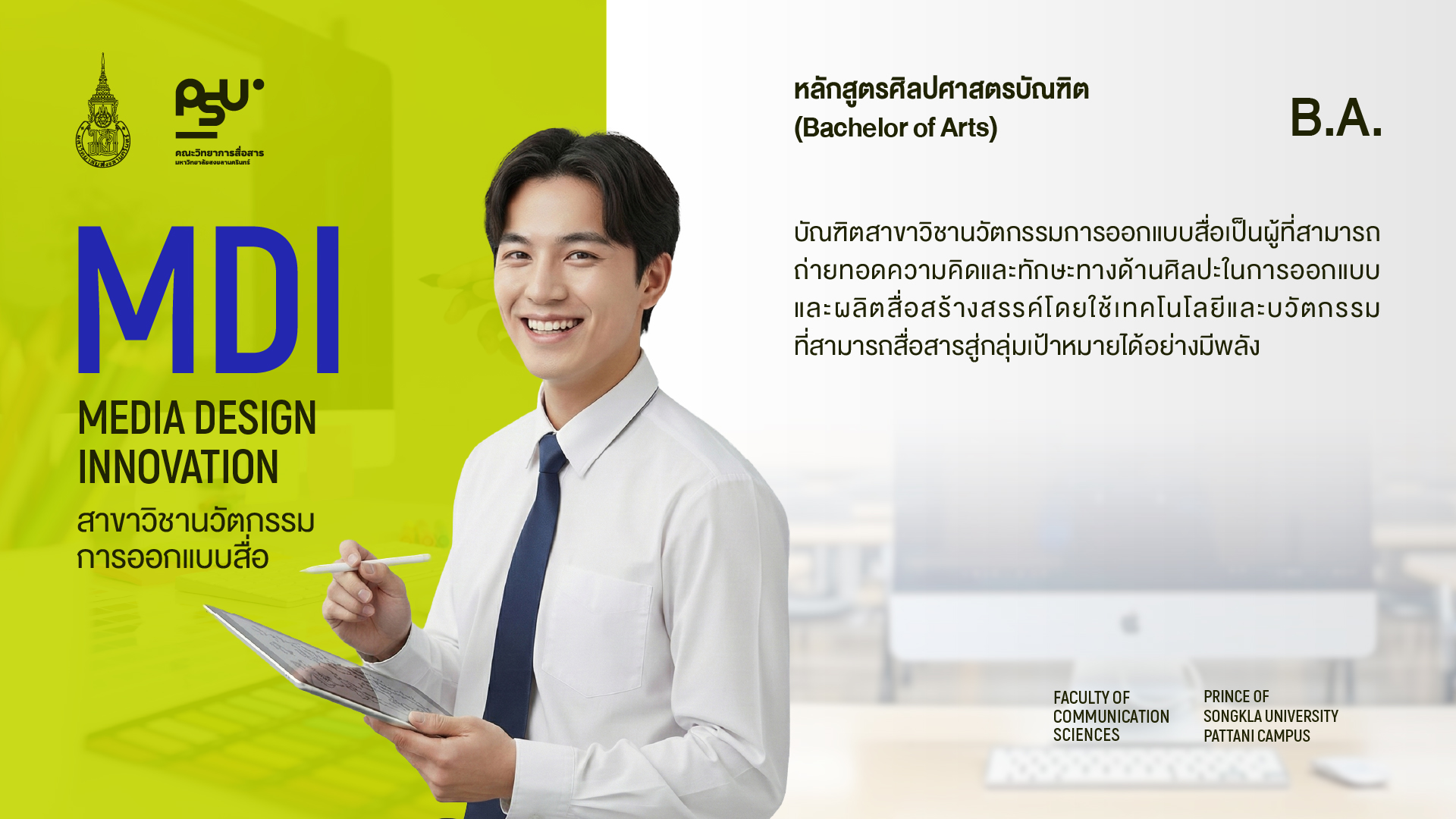 หลักสูตรศิลปศาสตรบัณฑิต (Bachelor of Arts) หลักสูตรศิลปศาสตรบัณฑิต สาขาวิชานวัตกรรมการออกแบบสื่อ หลักสูตรศิลปศาสตรบัณฑิต สาขาวิชานวัตกรรมการออกแบบสื่อ