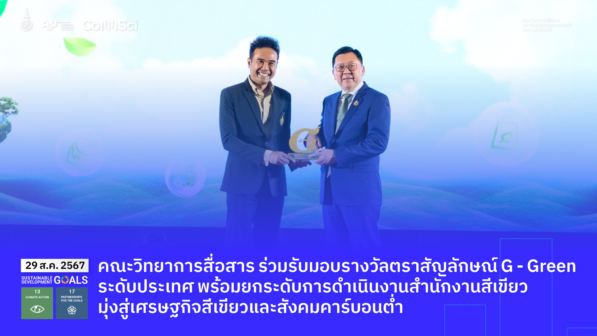 คณะวิทยาการสื่อสาร ร่วมรับมอบรางวัลตราสัญลักษณ์ G – Green ระดับประเทศ พร้อมยกระดับการดำเนินงานสำนักงานสีเขียว มุ่งสู่เศรษฐกิจสีเขียวและสังคมคาร์บอนต่ำ