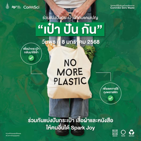 เชิญชวนนักศึกษาและบุคลากรเข้าร่วมกิจกรรม Just Share and Reuse Ep.1 “เป๋า ปัน กัน”