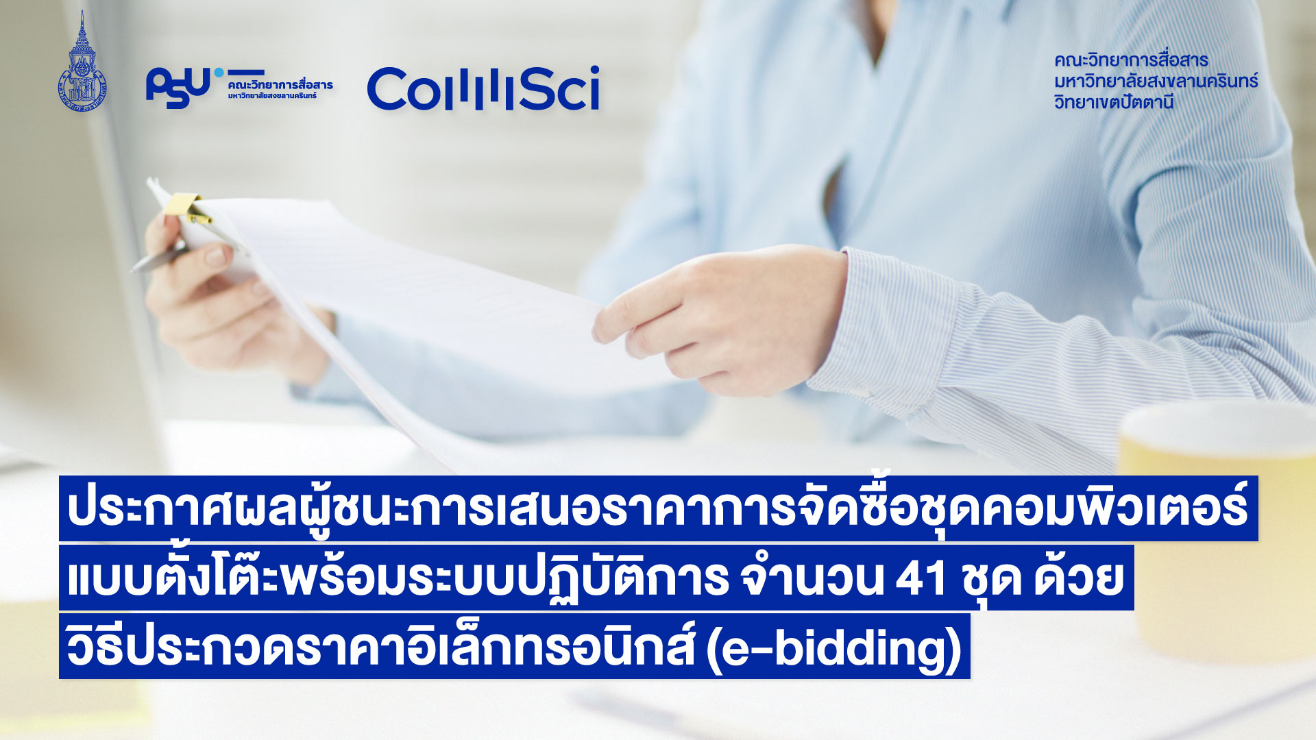 ประกาศผลผู้ชนะการเสนอราคาการจัดซื้อชุดคอมพิวเตอร์แบบตั้งโต๊ะพร้อมระบบปฏิบัติการ จำนวน 41 ชุด ด้วยวิธีประกวดราคาอิเล็กทรอนิกส์ (e-bidding)